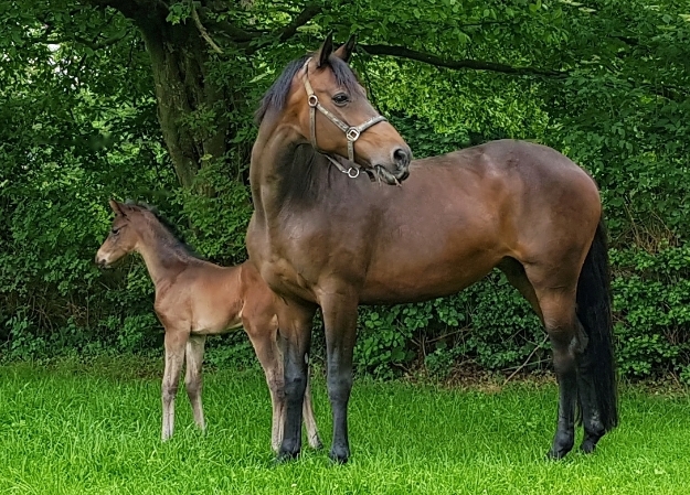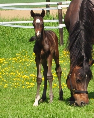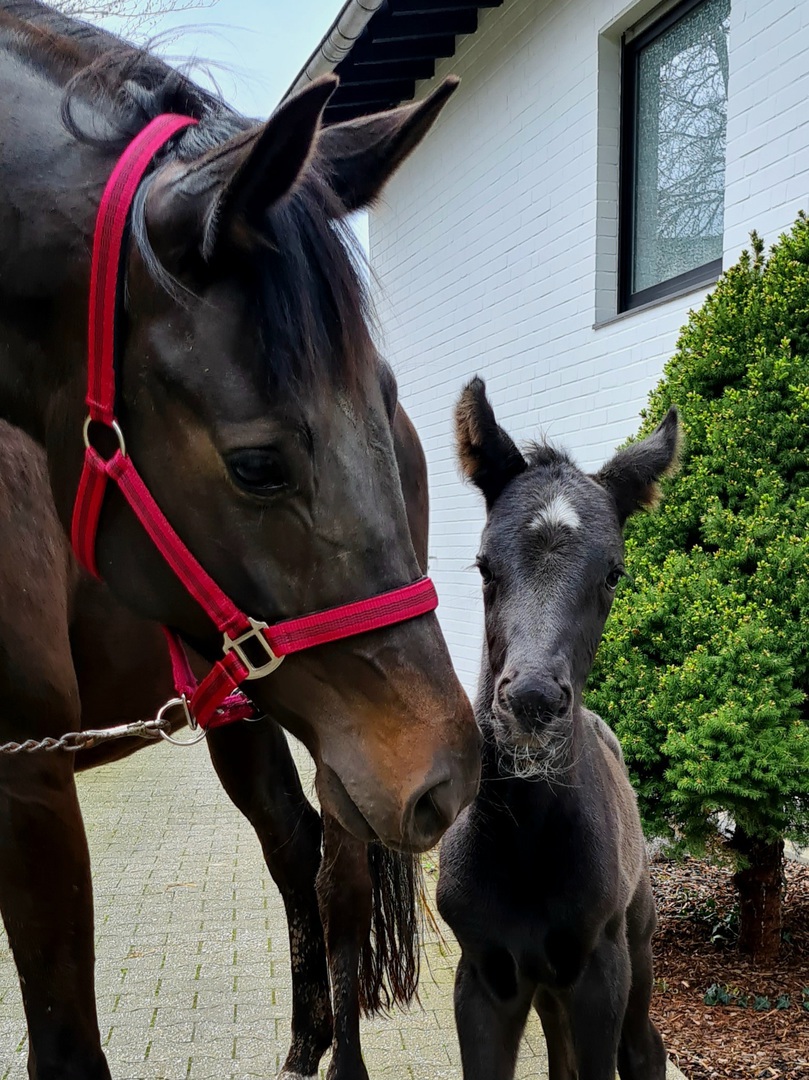 In den frühen Morgenstunden erblickte ein Stutfohlen in unserem Stall das Licht der Welt. Die kleine Pferdedame wurde nach ihrem Geburtsort Immendorf "Immenfee" getauft. Vater des Fohlens ist der Oldenburger Siegerhengst Morricone v. Millenium. Mutter der kleinen Schönheit ist Ithaka v. Sir Donnerhall, die mit Immenfee ihr erstes Fohlen bekam.