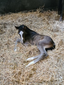 In den frühen Morgenstunden ist bei uns im Stall ein Hengstfohlen zur Welt gekommen. Damit hat unsere Staatsprämienstute Royal Girl nun das dritte außergewöhnliche Fohlen in Folge vom Oldenburger Siegerhengst For Romance I geboren. Eine Passerpaarung! Der kleine Mann trägt die begehrte Rappfarbe und hat vier weiße Söckchen.