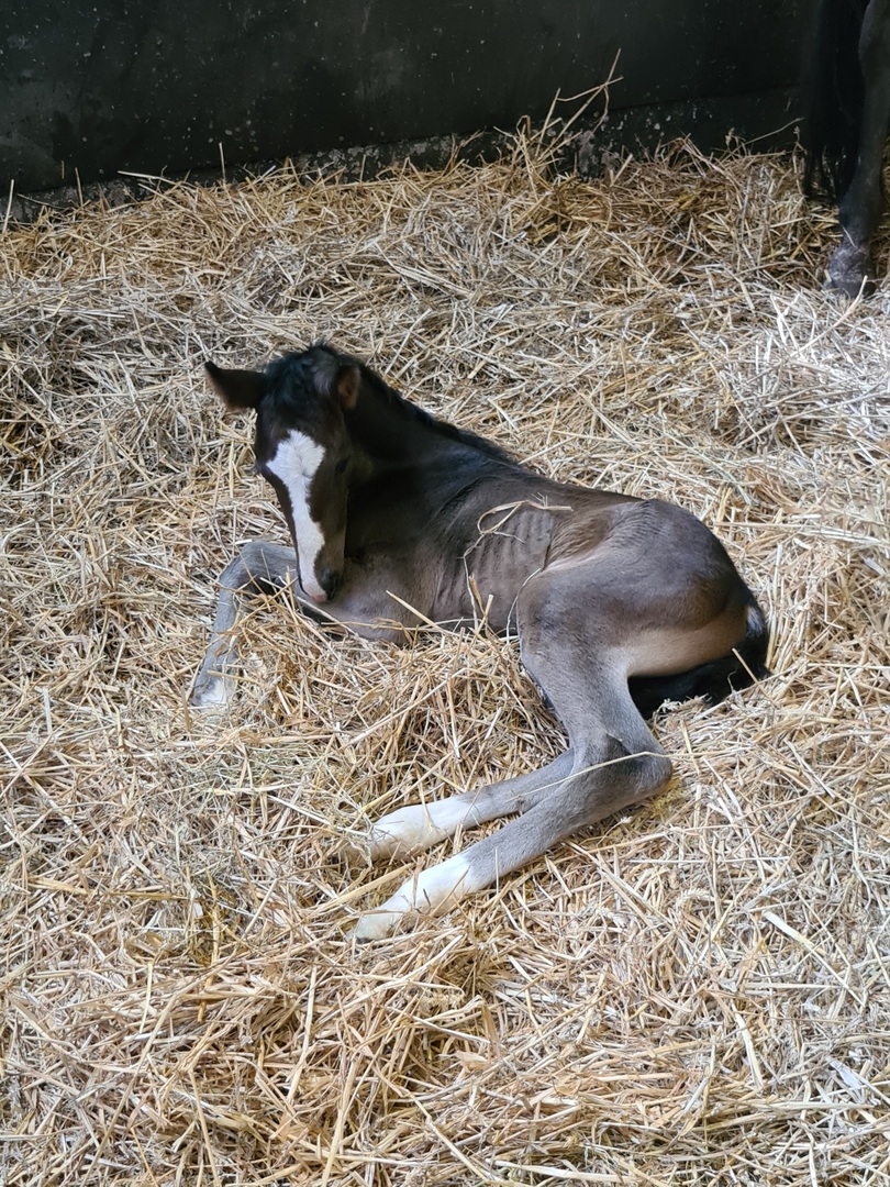 Zu einer züchterfreundlichen Zeit am späten Abend bekam unsere Immenfee ihr erstes Fohlen. Vater des Stutfohlens ist der Hengst In My Mind. Bemerkenswert ist, dass in 2021 ebenfalls ein Hengstfohlen am 10. April bei uns das Licht der Welt erblickte und die beiden sich in der Fellfarbe und den vier weißen Söckchen sehr ähnlich sind, obwohl sie nicht verwandt sind.