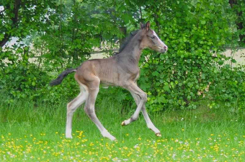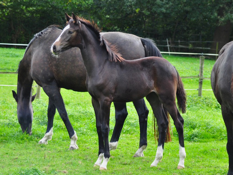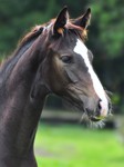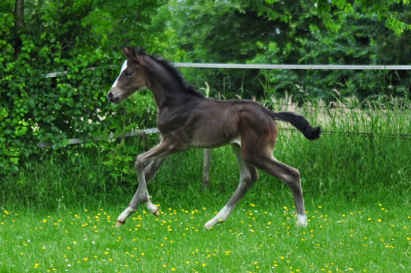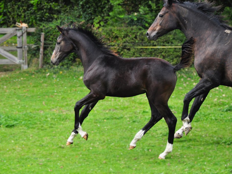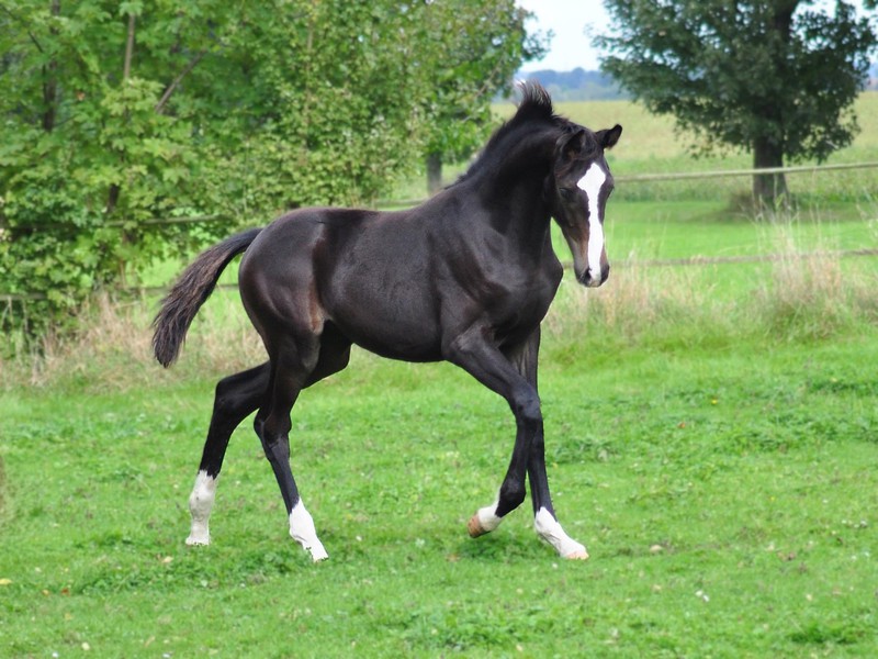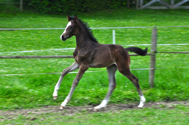 Farbe u. Abzeichen: Dunkelbraun, 4 weiße Fesseln