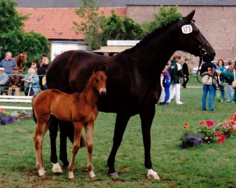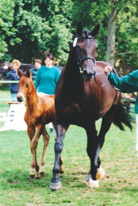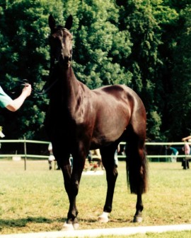 Farbe / Abz.: Rappe, l. Vf. u. r. Hf. weiß