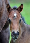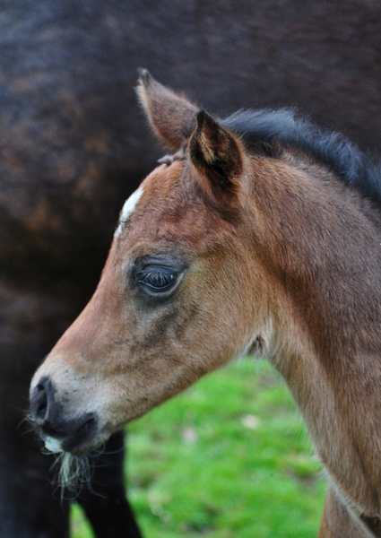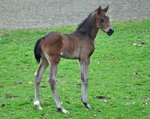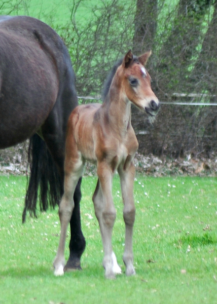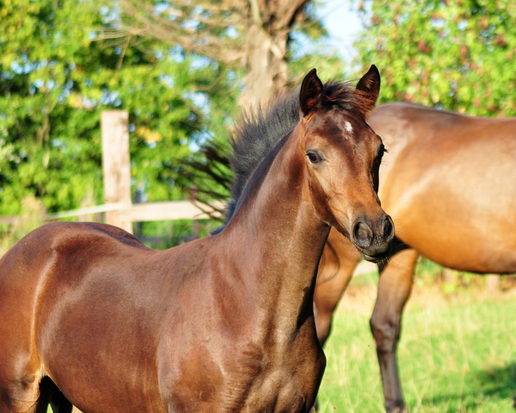 Farbe u. Abzeichen: Braun, Flocke, rechte u. linke Hinterfessel weiß